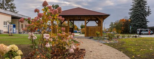 Nový altánek a nasvícená socha: Areál Rokycanské nemocnice zve k odpočinku